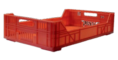 Caja de mercado Apilable. Cerrado (laterales largos), Fondo calado. Medidas: 500x300x110mm